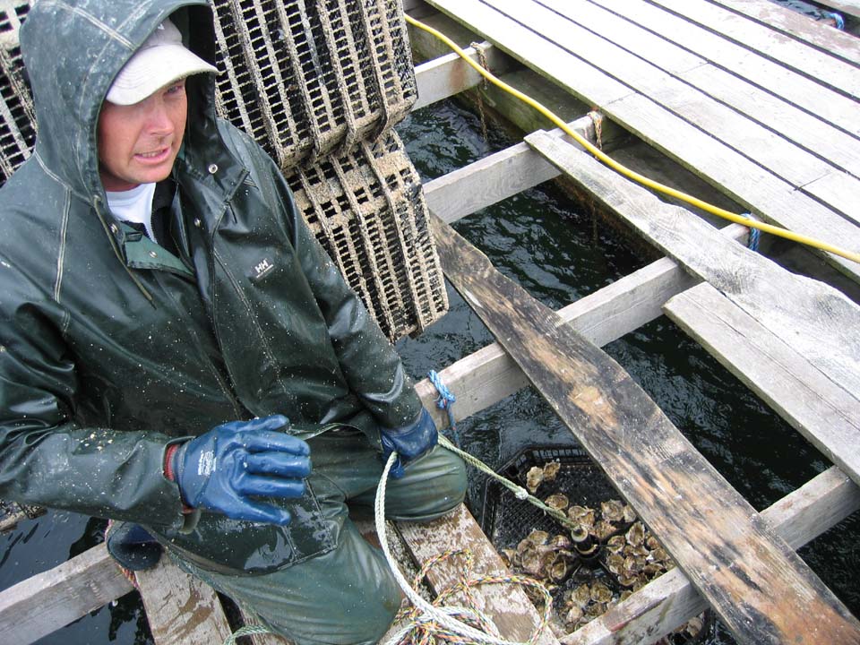 - While the oysters are on the farm they are subjected to frequent testing, some for research purposes (cadmium) and some to determine when various other organisms are setting. E.g., they watch very carefully for barnacle larvae and dip the oysters in a high saline solution immediately when they see larvae under the microscope (if you can see them with the naked eye you are too late).